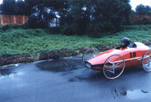 在比賽跑道行駛的車