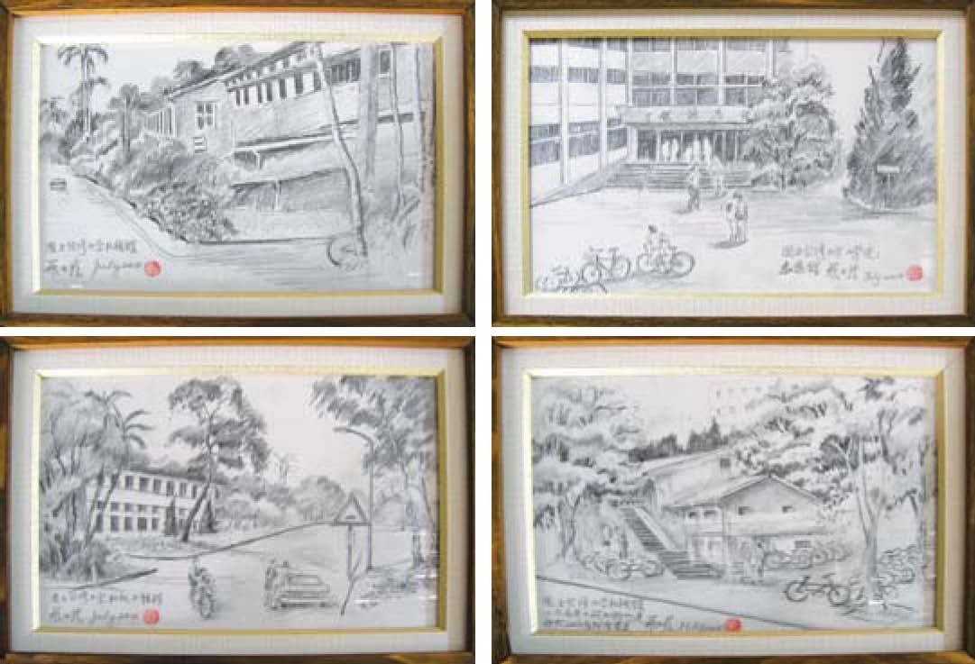 他表示:因為家族中有五個孩子都是台大高材生,其中還有一個正就讀機械系二年級,他覺得台大是一個很好的學校,也很感謝校方為社會培育了這麼多優秀的人才,因此特別畫了一幅大的水彩畫與四幅鉛筆素描致贈給校方。趕在他即將進醫院動眼睛手術的前一天完成這五幅作品,深怕一旦動了手術,會有風險,無法完成這個心願,真的讓人很感動。