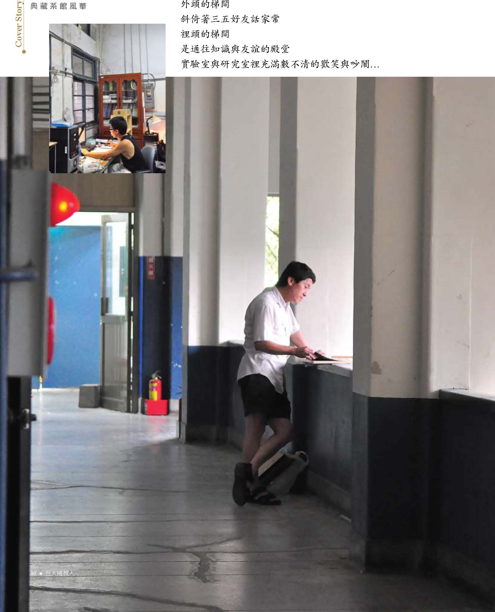 典藏系館風華外頭的梯間斜倚著三五好友話家常裡頭的梯間是通往知識與友誼的殿堂實驗室與研究室裡充滿數不清的歡笑與吵鬧…