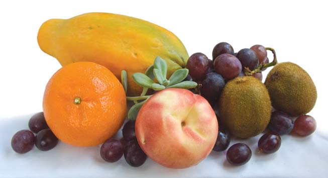 芭樂、奇異果、紅肉葡萄柚(食用時需與藥物例如:高血壓藥物隔開,以免產生副作用)、香蕉,紅肉西瓜、柳丁、橘子、紅肉木瓜、蘋果(不去皮,但洗淨)、葡萄(葡萄子的提取物具有抗氧化及抗衰老的成份,紅葡萄酒的多酚可降低脂肪食物所導致的心臟血管疾病,葡萄皮含類黃酮,吃葡萄不要去皮,康乃爾大學報告葡萄皮可抗癌)。